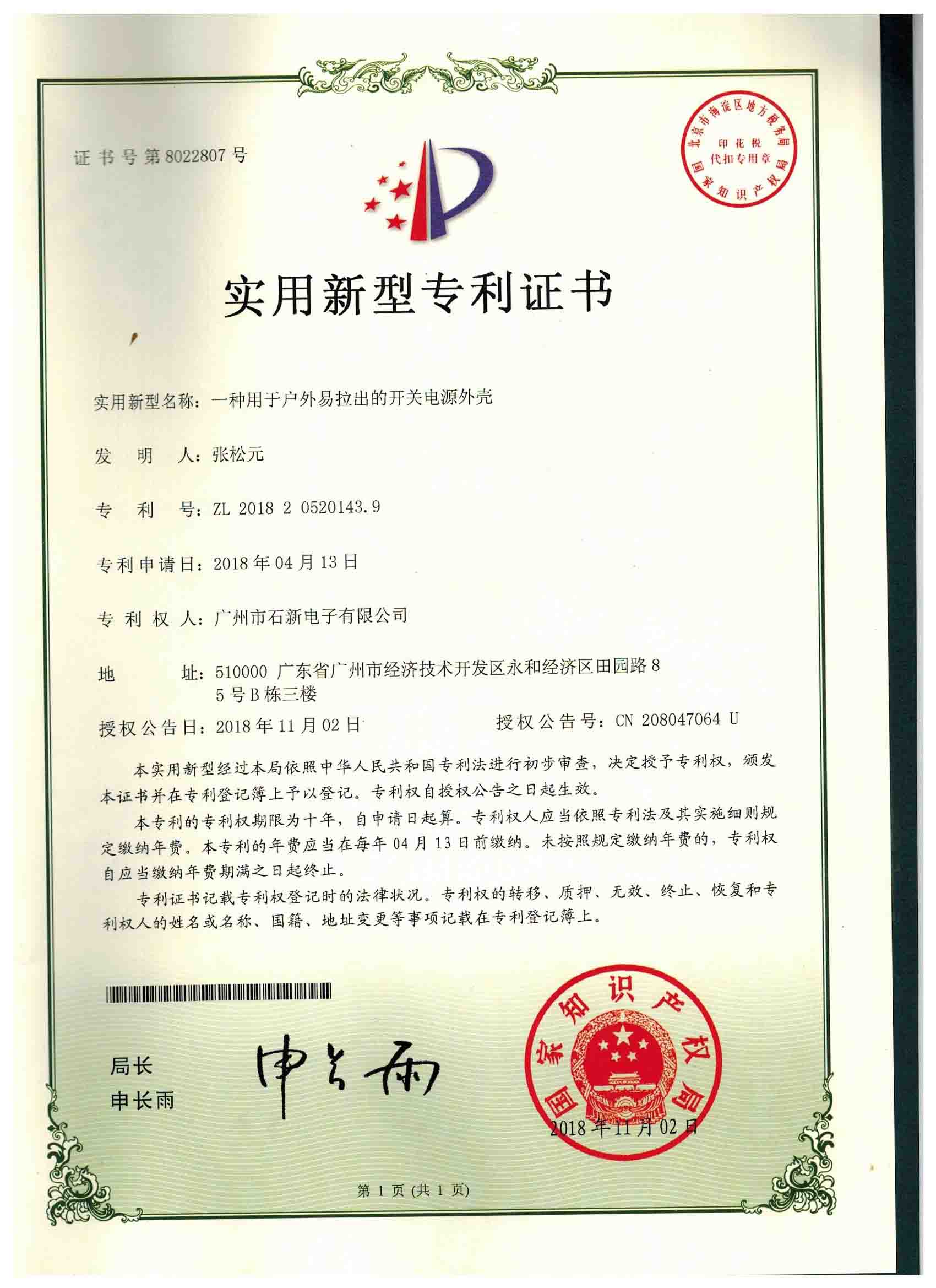 實用新型專利證書